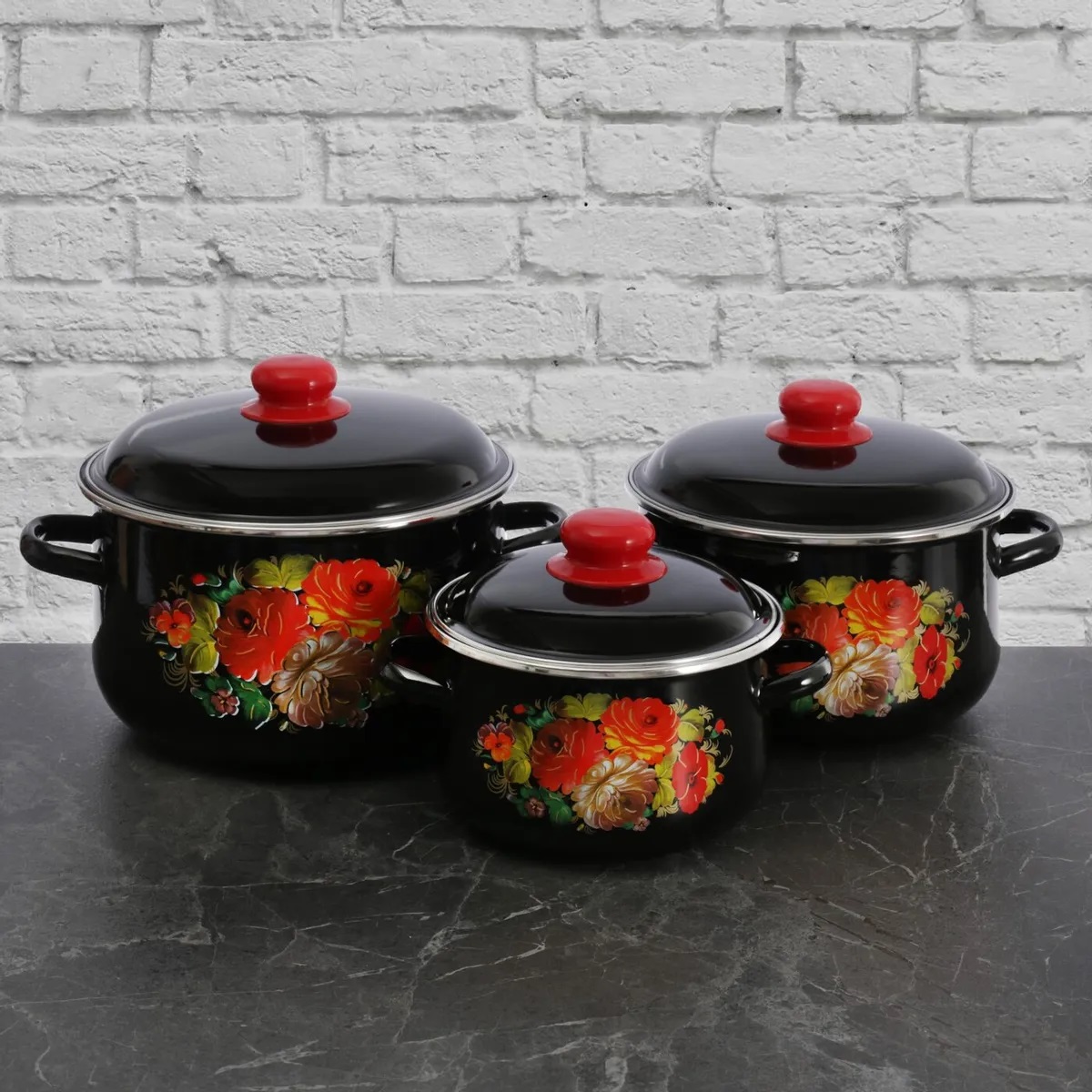Набор кастрюль эмалированные "Жостово"