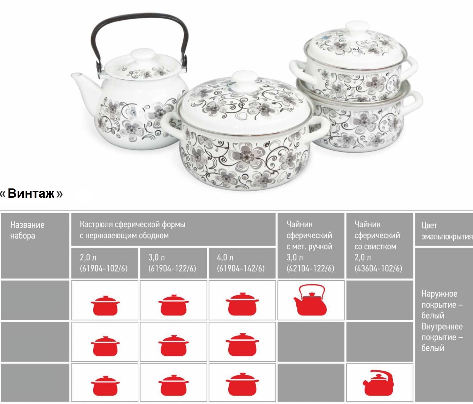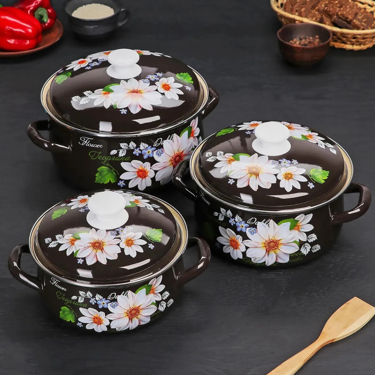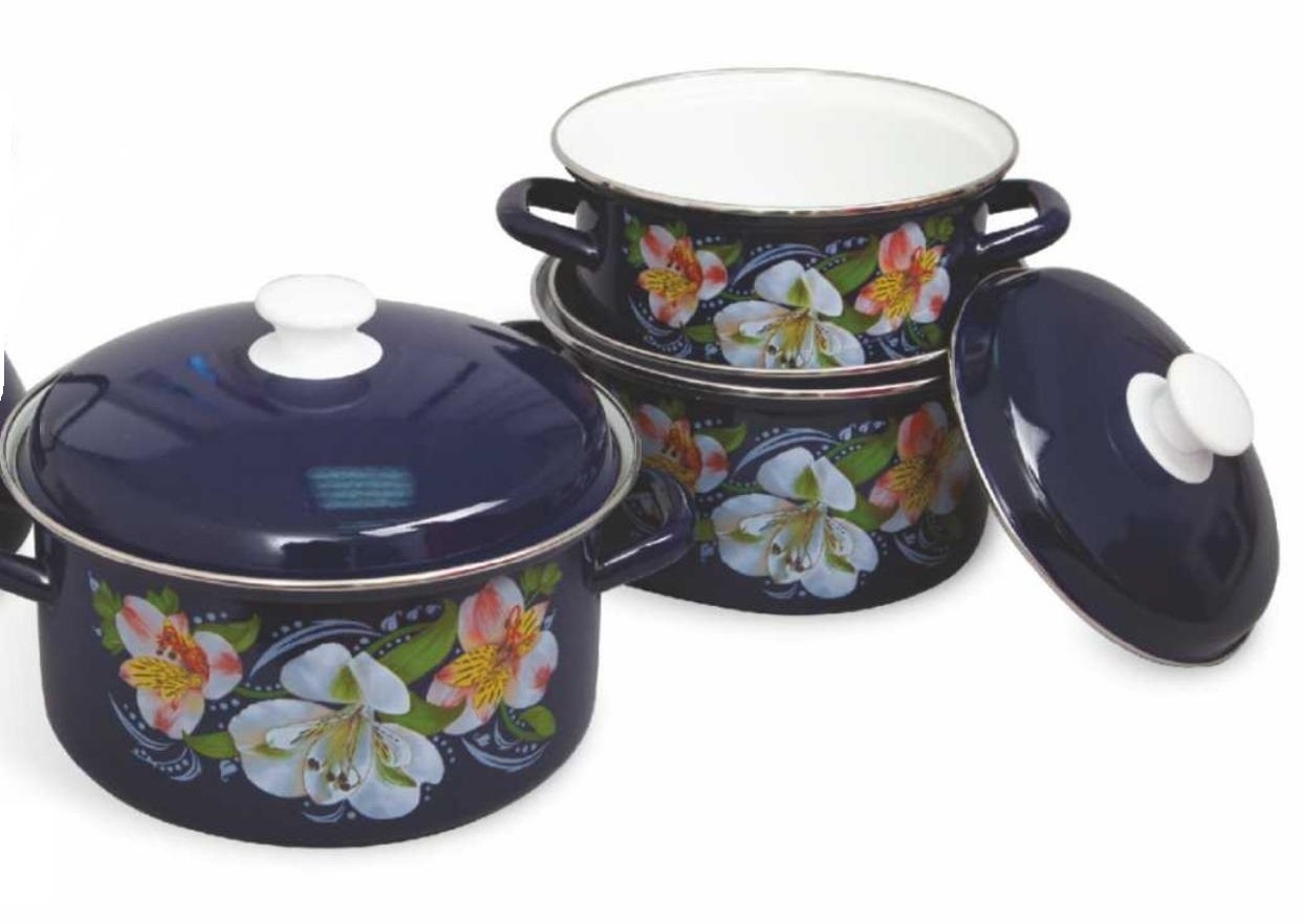 Набор кастрюль эмалированная сталь Георгины