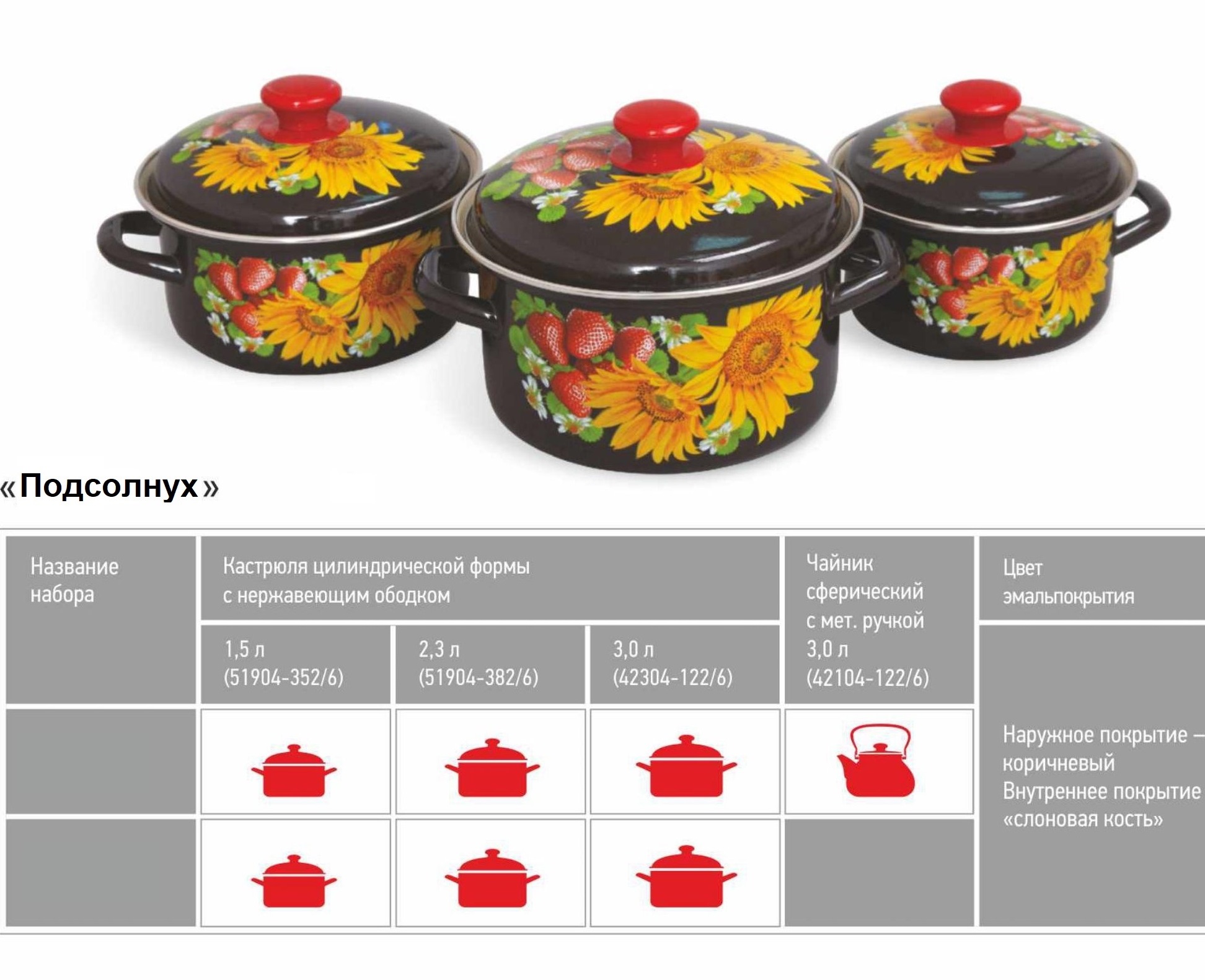 Набор кастрюль Лысьвенские эмали "Подсолнух"