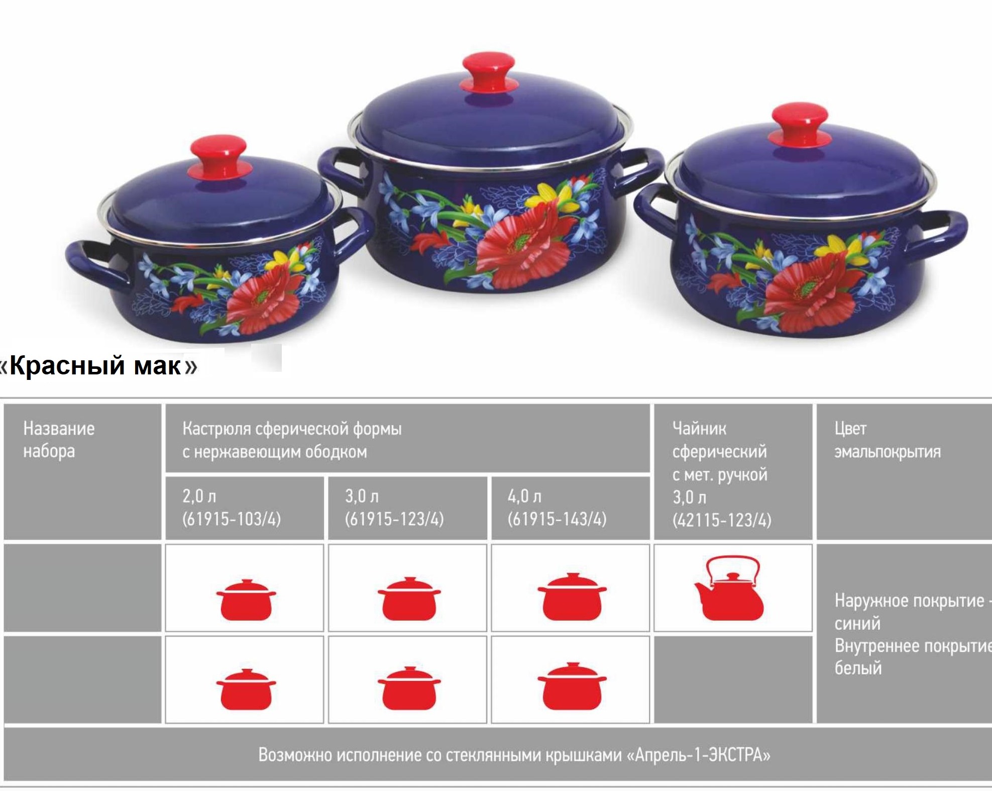 Набор кастрюль эмалированные "Красный мак"