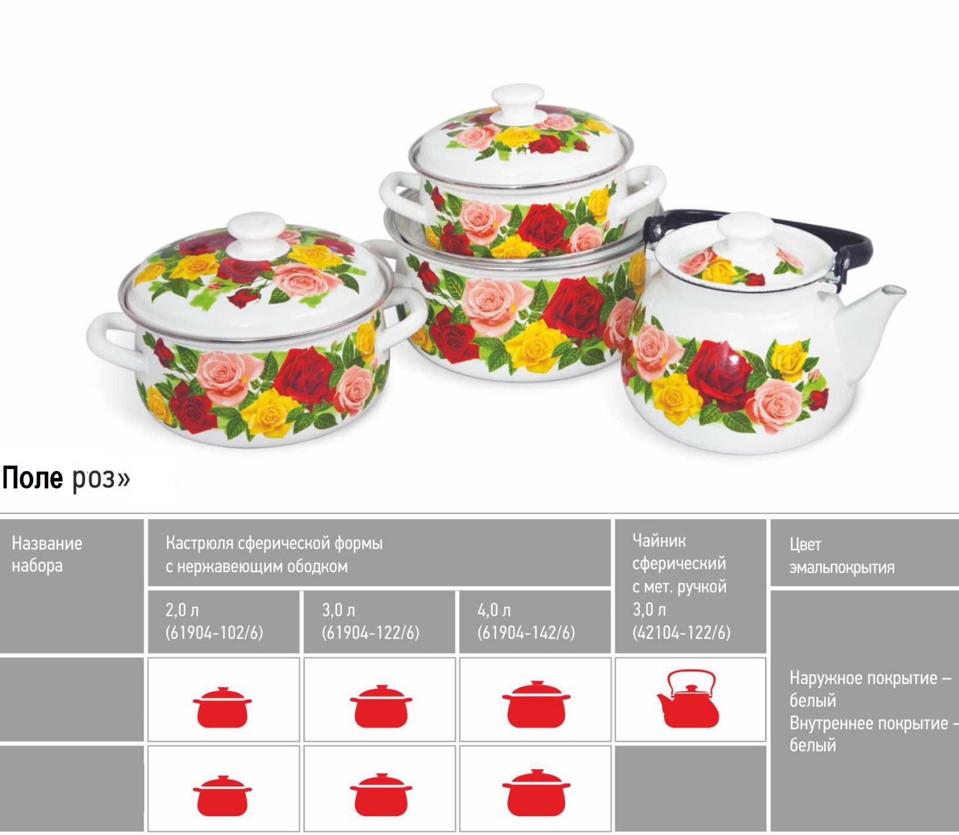 Набор кастрюль эмалированная сталь "Поле Роз"