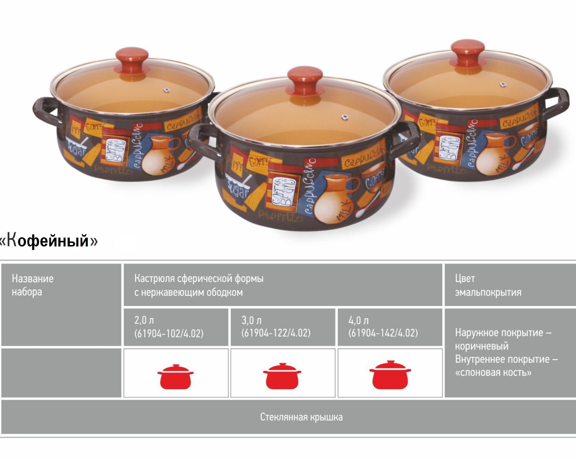 Набор кастрюль эмалированная сталь "Кофейный"