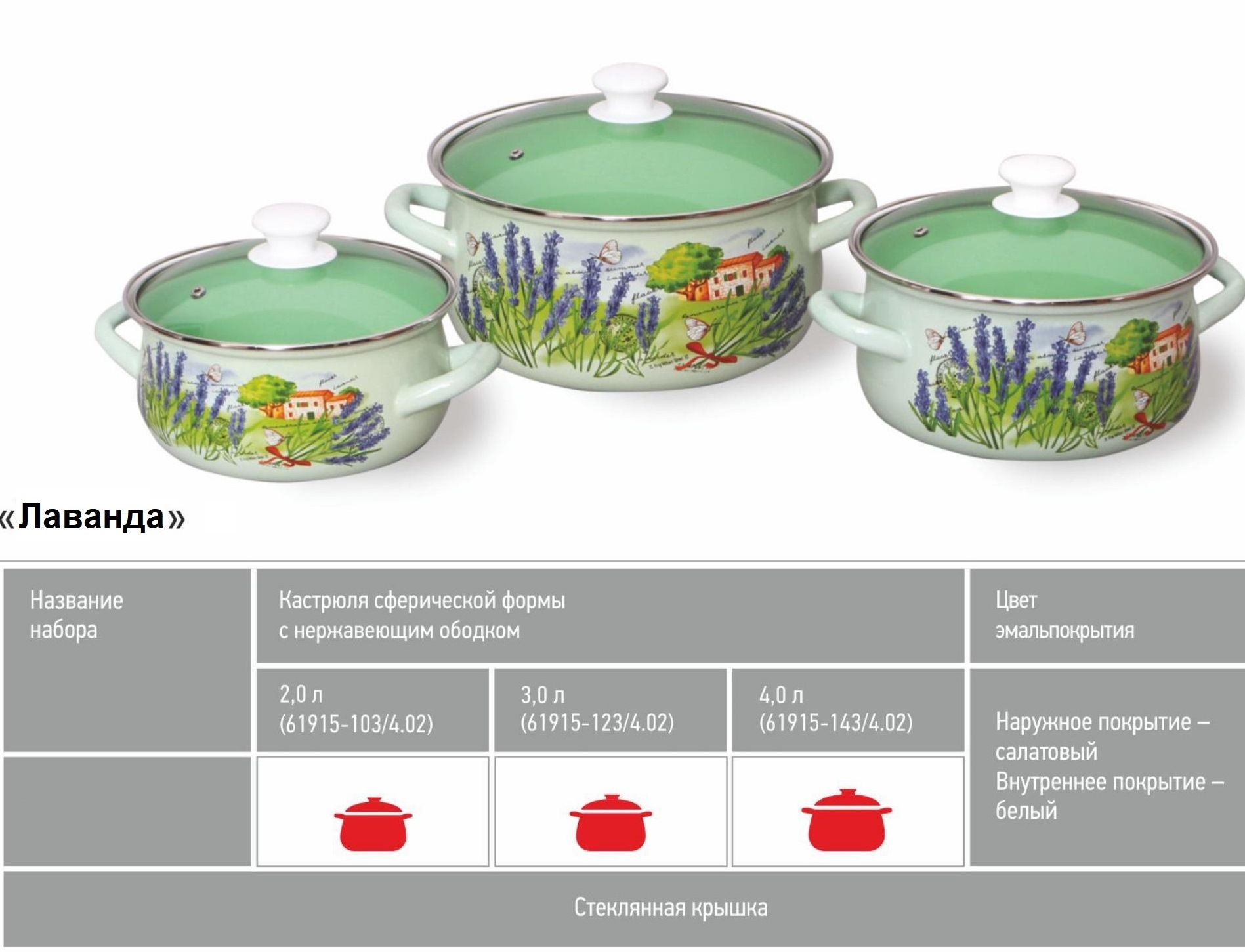 Набор кастрюль эмалированная сталь "Лаванда"