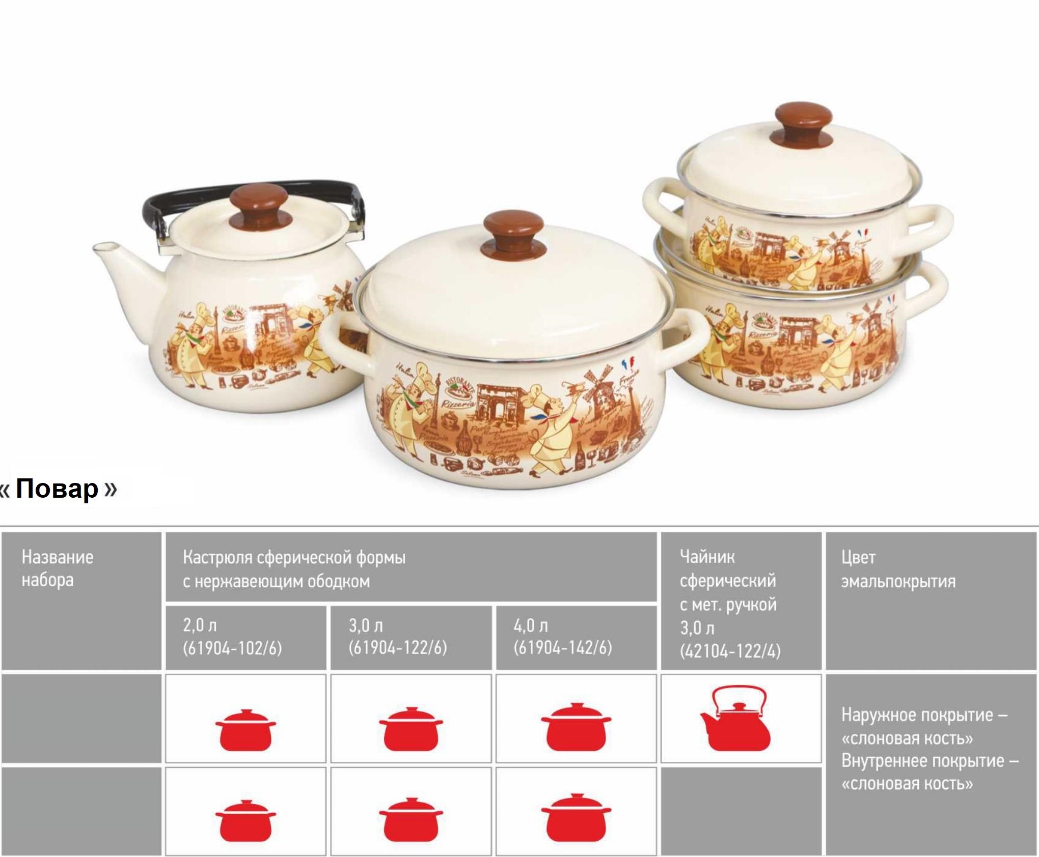 Набор кастрюль эмалированные "Повар"