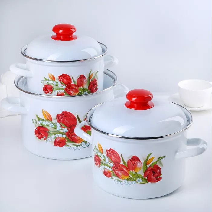 Набор кастрюль эмаль Тюльпаны
