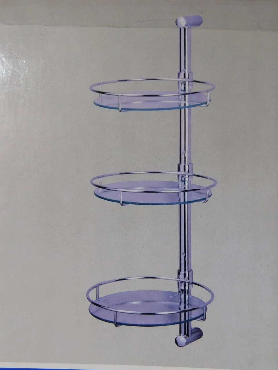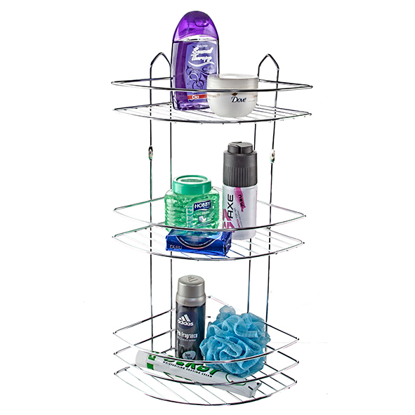 Полка угловая в ванную комнату с металлической трубкой SILVER 006