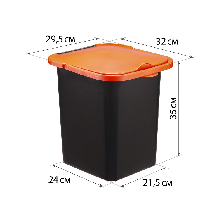 Размеры: 295x350x345 мм. Удобство, продуманное до мелочей! Особая конструкция крышки позволяет пользоваться контейнером, не испачкав руки. Контейнер оснащен специальной ручкой, которая позволяет: - открыть контейнер легким нажатием, не дотрагиваясь до крышки - зафиксировать крышку в открытом виде - легким движением закрыть крышку. Крышка плотно закрывается, сохраняя содержимое корзины закрытым и невидимым. Контейнер дополнительно оснащен специальным ободком для крепления мусорного пакета. Идеально подходит как для кухни, так и для офиса