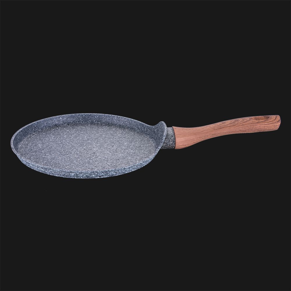 Блинница d25*2,2см, кованый алюминий, толщина стенок 0,5 см, 3 слоя мраморно-гранитного покрытия, эргономичная ручка "soft touch", индукционное дно, цвет: серый/коричневый,