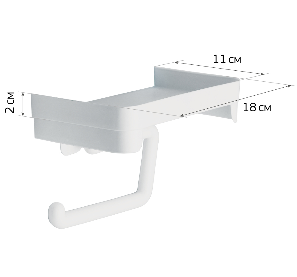 Держатель имеет полочку на которую удобно положить телефон, освежитель воздуха и любую другую полезную мелочь, находящуюся под рукой. Отличительная особенность держателя, среди подобных - это высокий борт полочки. Новенький, дорогой смартфон никогда не разобьет экран, соскользнув с полки на пол. Пластмассовый держатель для туалетной бумаги легко моется, никогда не заржавеет, не впитывает запахи и абсолютно гигиеничен.