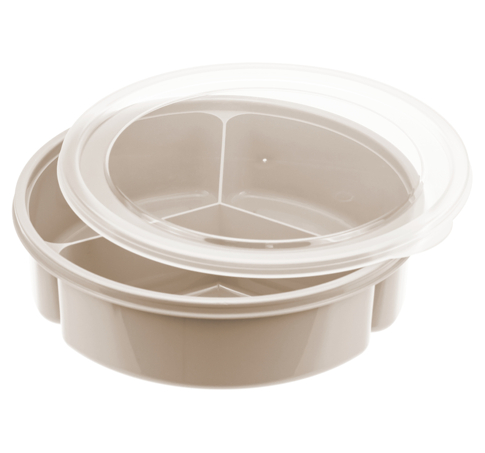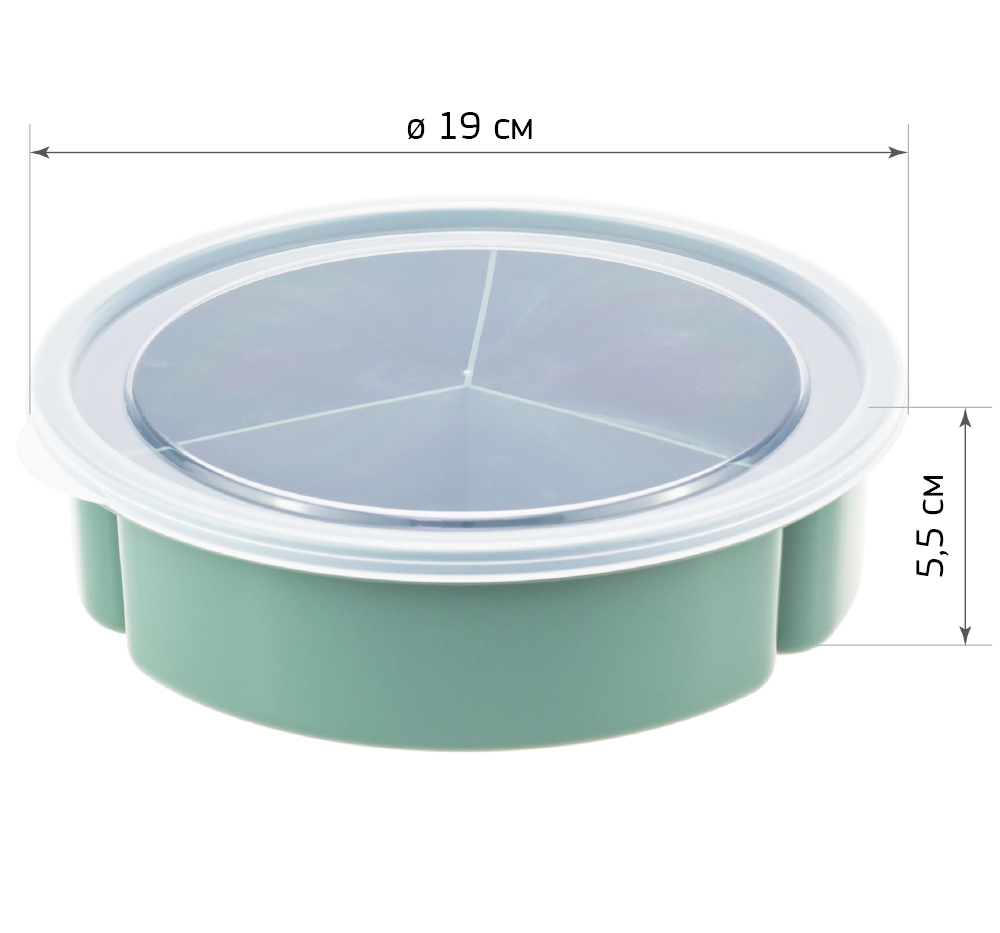 Менажница представляет собой блюдо, разделённое на секции. Изготовлена из цветного пищевого полипропилена и предназначена для холодной и горячей пищи. Она помогает экономить место на столе и подавать блюда рационально. В эти секции выкладывают различные виды салата или закусок. Благодаря перегородкам они не перемешиваются. В ней подают одно блюдо и различные заправки к нему. Она позволяет так же сделать сервировку стола эффектной. Идеально подходит для закусок, сухофруктов, сыра, орехов, оливок и других продуктов. Менажница имеет крышку, которая надёжно сохранит содержимое ячеек в закрытом положении. Станет украшением вашей кухни, а также необычным подарком для родных и друзей на праздник. Можно мыть в посудомоечной машине.