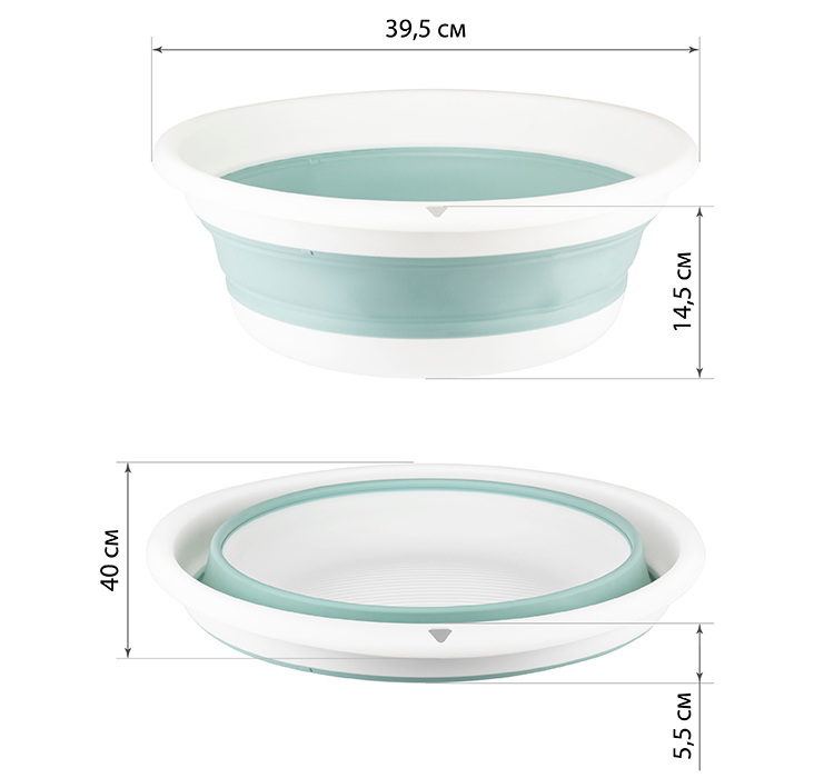 Универсальные складные тазы ФЛЕКС — незаменимый предмет в быту. Станут отличными помощниками в Вашем доме! Благодаря современным технологиям громоздкие тазы остались в прошлом! Удобные и практичные быстро и легко складываются за считанные секунды, что позволяет обеспечить минимум места для хранения. Высококачественный материал не пахнет и не впитывает запахи. Не деформируется. Просты в уходе — можно мыть моющими средствами. Материал таза термостойкий — может использоваться для стирки и замачивания белья, для уборки по дому, для дачи, для сборки овощей и фруктов, для пикника. Предусмотрено отверстие для подвеса. В сложенном виде: 39,5 × 40 × 5,5 см. В разложенном виде: 39,5 × 40 × 14,5 см.