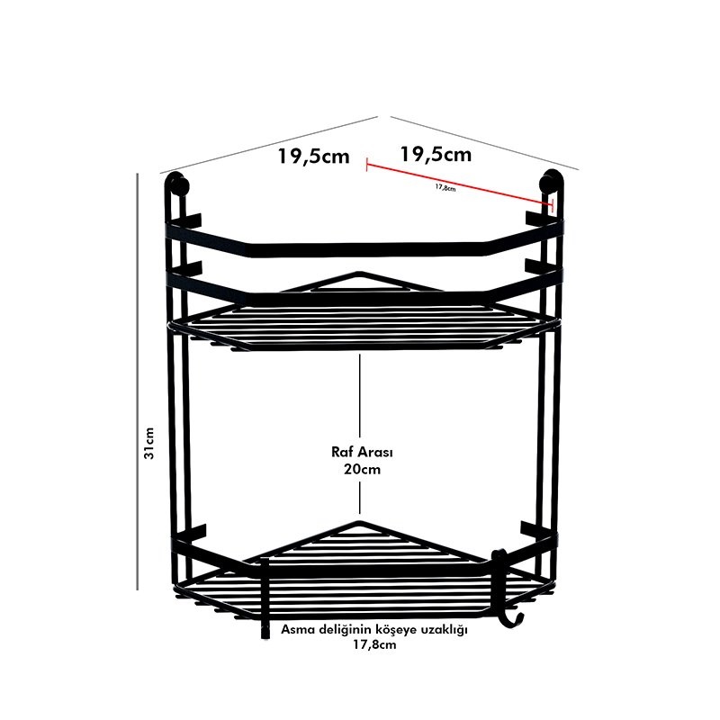 Полочка 2 яруса угловая черная метал Teknotel ES075