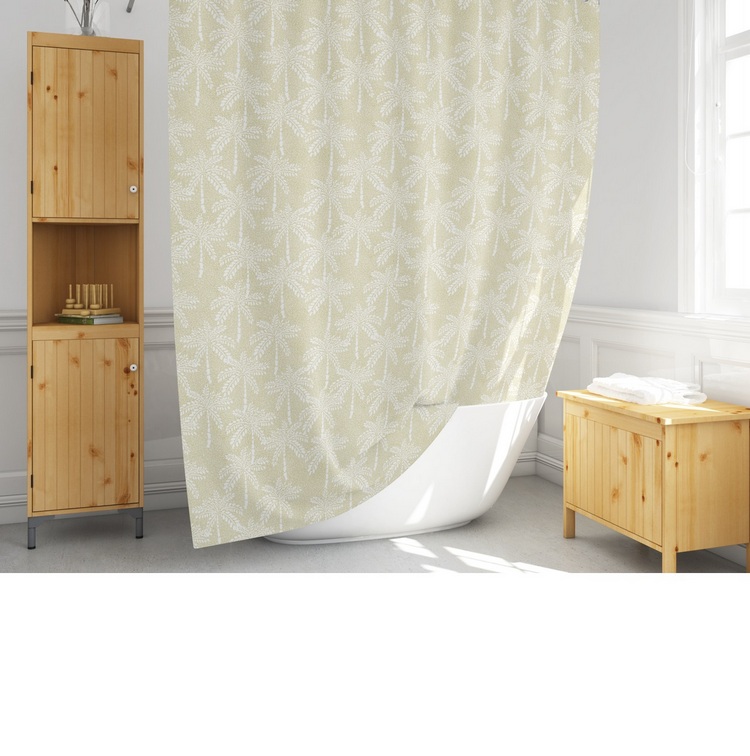 Качественный дизайнерский штрих для создания комфорта в вашей ванной комнате Размер: 180х200 см Материал: 100% полиэстер с водоотталкивающей пропиткой, но по своей фактуре и на ощупь очень похож с тканью Шторка быстро сохнет, легко стирается, гладится и обладает повышенной износостойкостью.