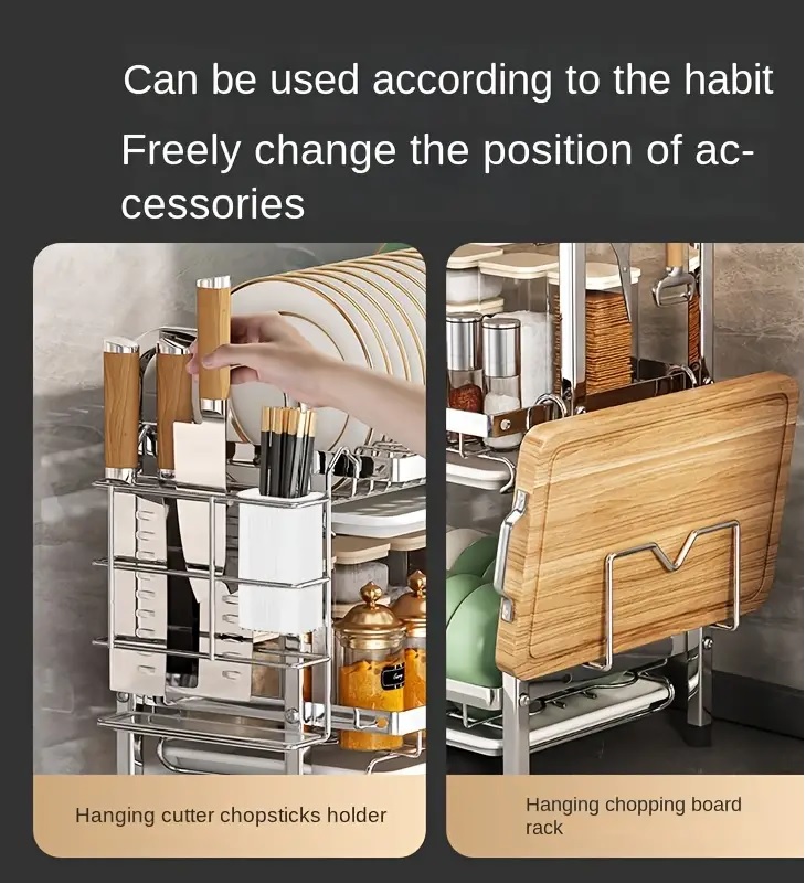 Сушка для посуды из нержавеющей стали с системой слива, многофункциональный органайзер для мисок, тарелок, столовых приборов, посуды, с решением для хранения непищевых предметов для кухни.