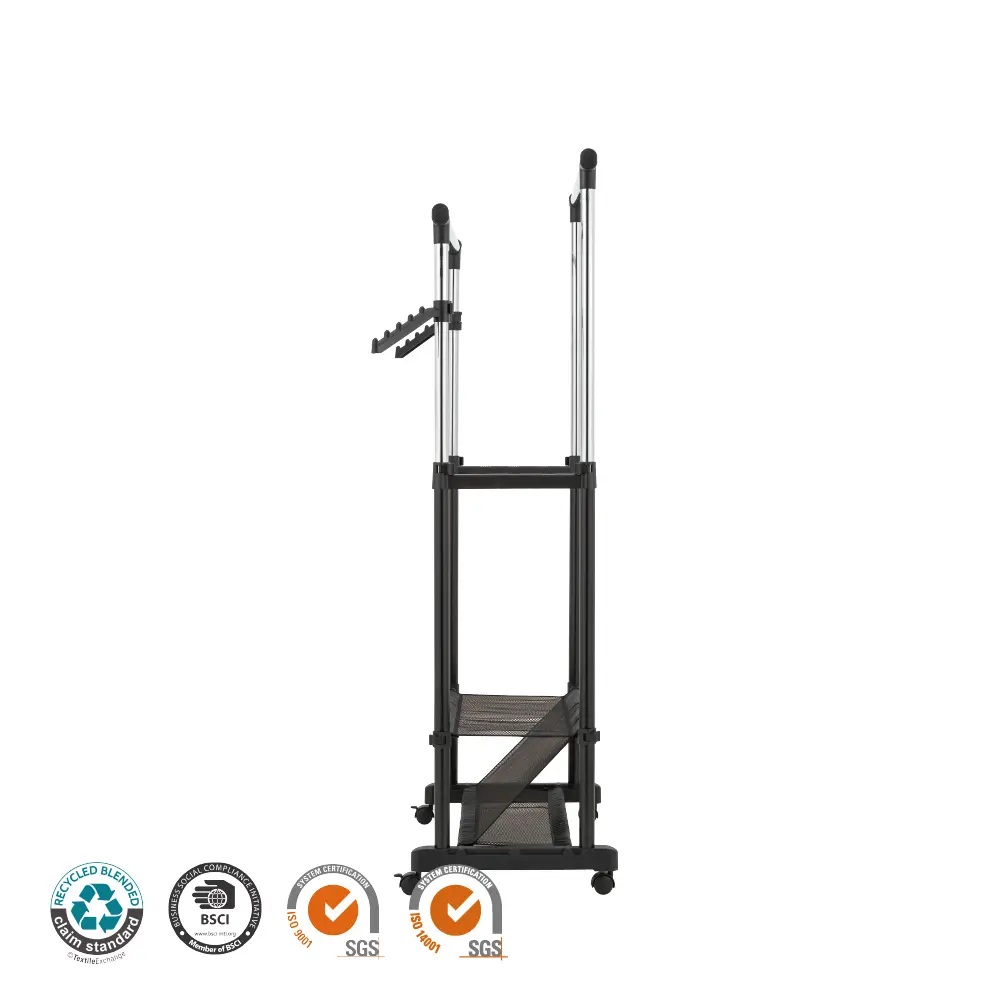 Наша регулируемая стойка для одежды оснащена двойными штангами для дополнительного места для подвешивания, что делает ее идеальным вариантом как для хранения одежды дома, так и для демонстрации ее в магазинах. Изготовленная из высококачественного металла, стойка имеет регулируемую высоту, что позволяет с легкостью разместить одежду разной длины. Такая гибкость делает его идеальным вариантом как для домашнего использования, так и для предприятий розничной торговли, где потребности в демонстрации информации могут различаться. Регулируемая высота для индивидуального использования. Легко изменяйте высоту, чтобы подгонять одежду разной длины. Регулируемая по высоте конструкция — отрегулируйте высоту вешалки в соответствии с различной длиной одежды и предпочтениями. Встроенная полка для обуви. Удобное хранение обуви и аксессуаров благодаря встроенной нижней полке. Размер: 110 x 42 x 96,5-166,5 см. Материал: круглая труба 32 мм и 28 мм и полипропилен. Вес продукта: 4,38 кг. Отделка: порошковое покрытие. Упаковка: 1 шт. / коричневая коробка.