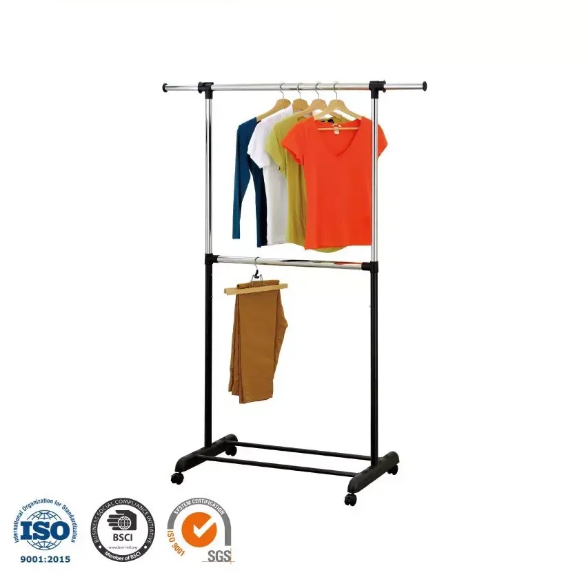 Эта регулируемая двойная вешалка для одежды — практичное решение для дополнительного места для развешивания одежды — идеально подходит для прачечных, общежитий или любых других мест, где требуется больше места для хранения. Стойка оснащена легко вращающимися колесами для удобства перемещения, имеет регулируемую высоту и две нижние перекладины, которые отлично подходят для хранения обуви или аксессуаров. Самые продаваемые страны: Германия, США, Финляндия, Индонезия, Великобритания, Австралия, Израиль, Саудовская Аравия Простая сборка. Прочная хромированная вешалка для одежды из стали. Конструкция из хромированной стали с регулируемой высотой и выдвижными боковыми штангами. Портативная конструкция. Размер: 93–153 Ш x 44 Г x 156–186,5 В см . Материал: Стальная трубка. Вес продукта: 2,81 кг . Отделка: хромирование и порошковое покрытие.