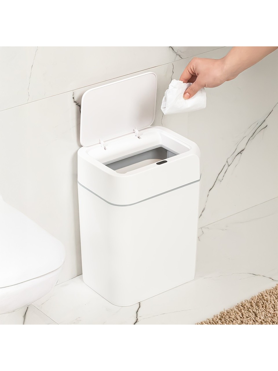 Мусорное ведро с датчиком движения, бесшумным отключением, для ванной и кухни, работает от батареек, с крышкой, 12 литров. Мусорное ведро с датчиком движения и бесшумным отключением, мусорное ведро для ванной и кухни с крышкой, мусорное ведро для ванной, 2 батарейки AA, 12 л. Это практичное и стильное мусорное ведро с датчиком движения, предназначенное для ванных комнат и кухонь, разработано с учетом потребностей пользователя. Объемом 12 литров, оно идеально подходит для отходов среднего размера и особенно понравится тем, кто ценит гигиену и простоту использования. Технология датчика движения: крышка автоматически открывается, когда вы подносите руку к мусорному ведру, а затем бесшумно закрывается. Эта функция очень полезна для гигиены, так как позволяет выбрасывать мусор, не прикасаясь к нему. Бесшумный механизм закрывания: вместо резкого захлопывания крышек традиционных мусорных ведер, крышка этой модели закрывается медленно и бесшумно. Это обеспечивает удобство использования, не нарушая тишины и покоя вашего дома. Объем 12 л: Мусорное ведро среднего размера имеет более чем достаточный объем для бытовых отходов, что делает его подходящим для использования в таких местах, как кухня или ванная комната. Эстетичный дизайн: Благодаря стильному и современному дизайну, он подходит для различных помещений, таких как ванные комнаты и кухни. Датчик движения работает от 2 батареек типа АА, что исключает необходимость в электрических проводах и повышает мобильность.