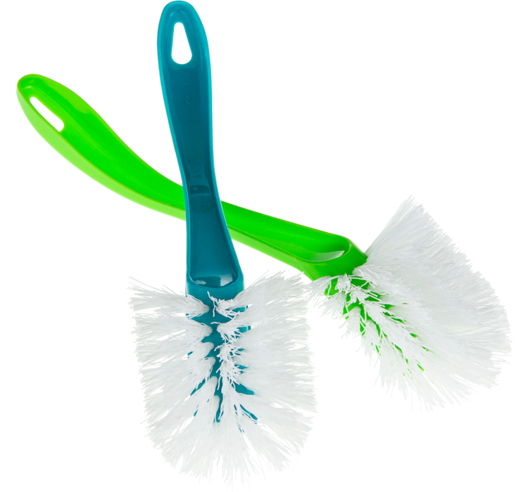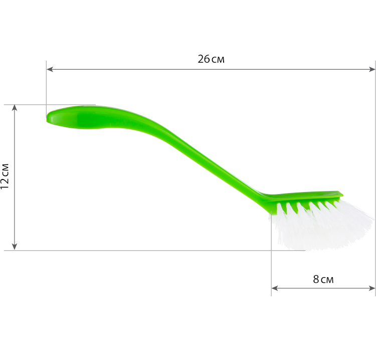 Щётки для мытья посуды прекрасно отмывают даже сложные загрязнения, имеют широкую ручку. Щетина достаточно жёсткая, чтобы держать форму, в тоже время не царапает поверхность посуды. Имеет отверстие на конце ручки для удобства хранения. В наборе щётки разных цветов: ярко-зелёный и бирюзовый.