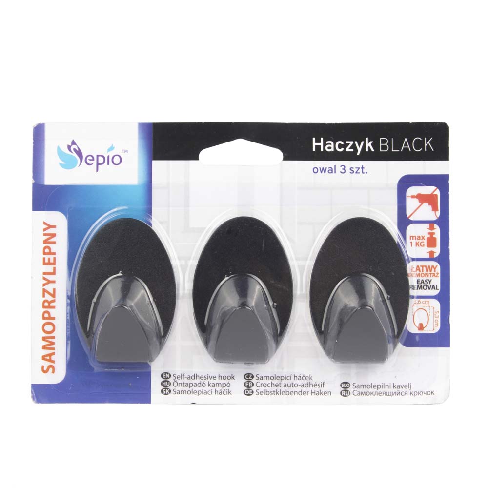 Набор крючков 3 шт овальные черные Sepio 7496