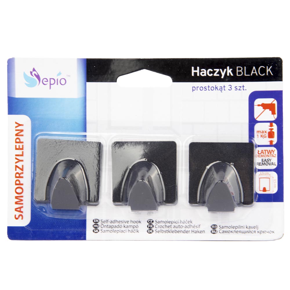 Набор крючков 3 шт квадрат черные Sepio 7502
