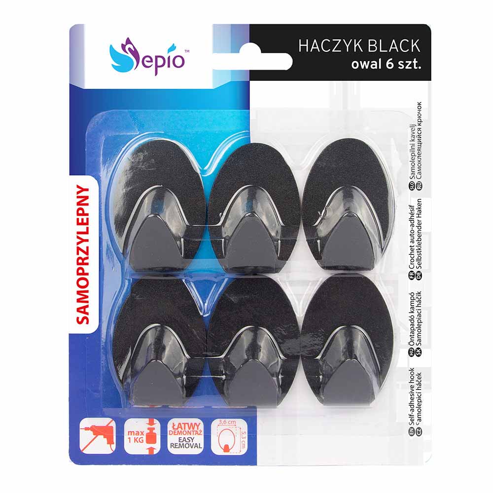 Набор крючков 6 шт овальные черные Sepio 7519