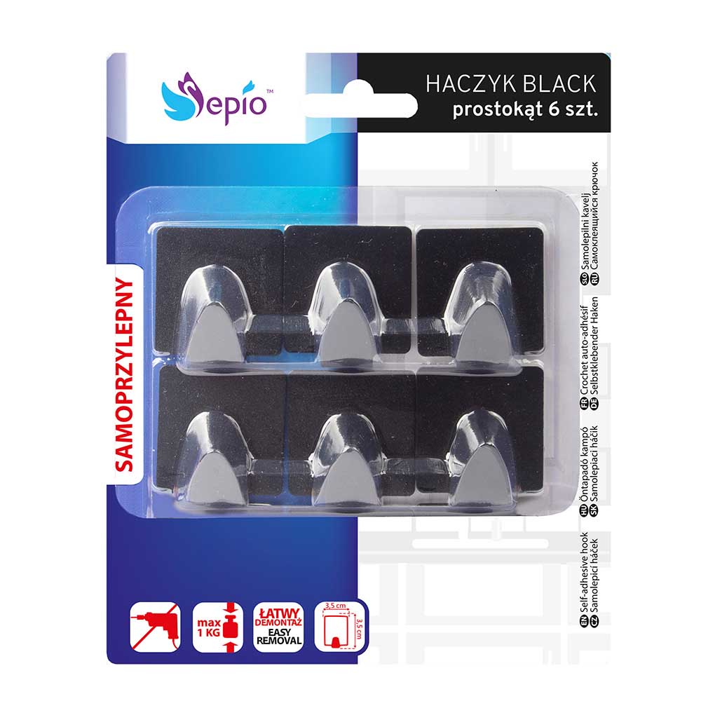 Набор крючков 6 шт квадратные черные Sepio 7526