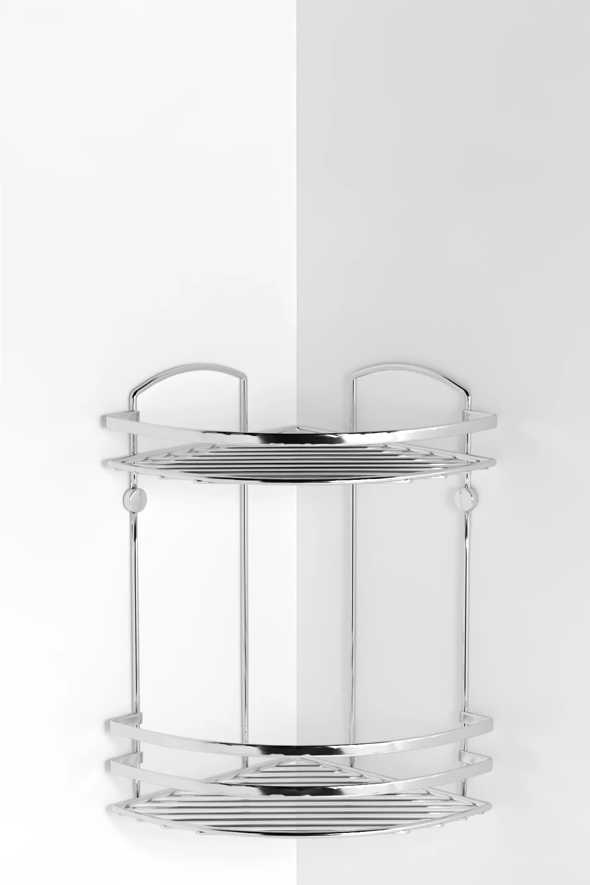 Полочка 2 яруса угловая хромированная метал Teknotel LM008
