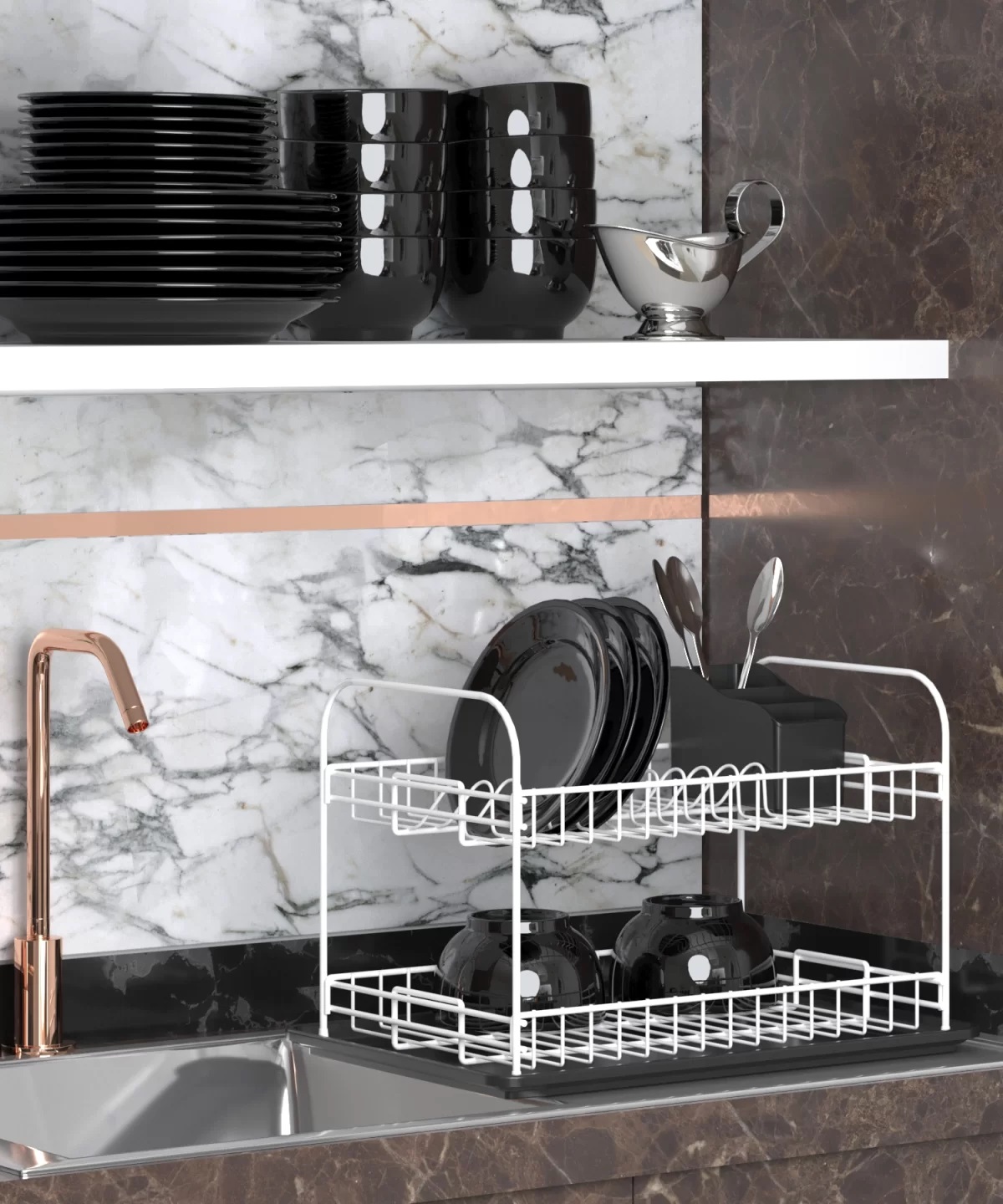 Сушка для посуды черная метал Teknotel KB007