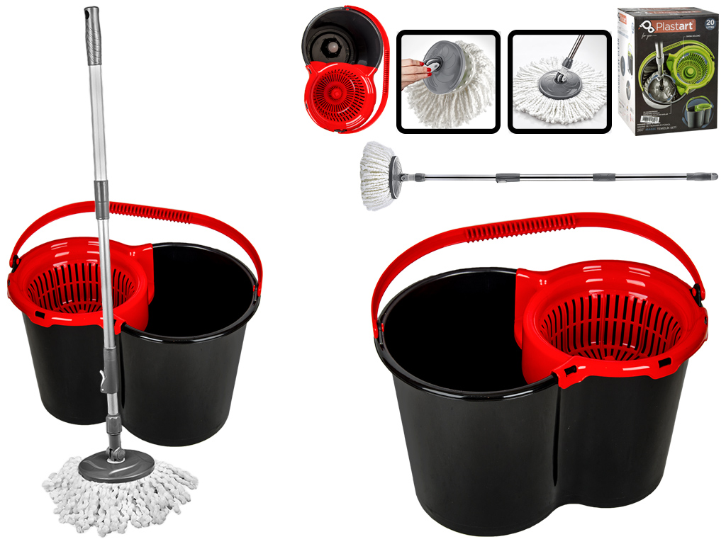 Швабра полотер 1,15м с ведром 20л с центрифугой для самоотжима Plast-Art TE120