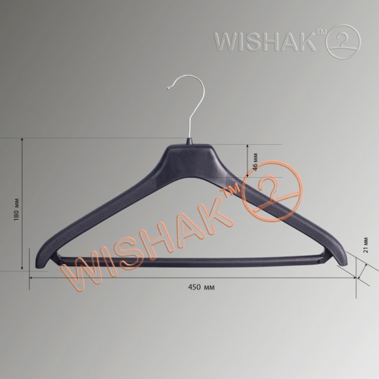 Cuierele profilate cu traversă sunt destinate pentru jachete, costume, jachete, paltoane. Acest model de cuiere este potrivit pentru multe obiecte masive, deoarece are o lățime de 20 mm și un cârlig metalic pivotant super-puternic. Cuierele pot fi realizate în orice culoare, dar la comandă. Cuierele P1 în culoarea neagră sunt întotdeauna în stoc. De asemenea, acest model are o varietate, poate fi realizat și fără traversă - acesta este articolul P3. Și un model cu cârlige detașabile P2. Grosime: 2 cm. Lățime: 46 cm. Material - Polistiren (material dur, elastic)