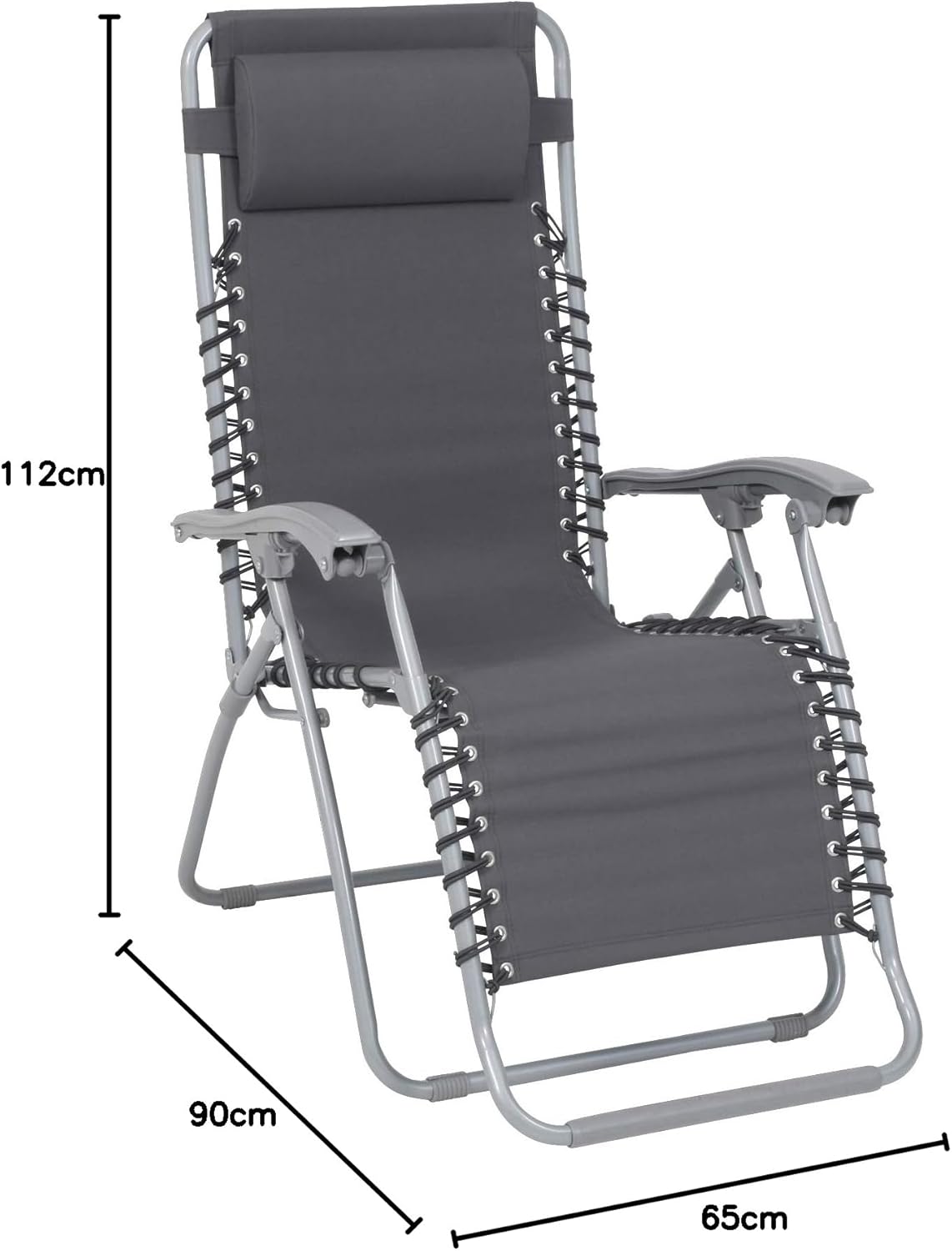 Un șezlong elegant pentru exterior, frumos și rafinat până la ultimul detaliu. Un design gri pur, simplu, cu accente moderne, precum șnururi rezistente care încadrează suprafața de dormit. Acest șezlong de plajă are atât o tăblie căptușită, cât și un spătar reglabil pentru o varietate de poziții confortabile de ședere și culcare, și se pliază pentru a economisi spațiu. Acest șezlong impresionează prin versatilitatea sa: perfect pentru casă, grădină, terasă și balcon, designul său pliabil este portabil și poate fi folosit și ca șezlong de camping sau scaun de plajă pentru călătorii. Șezutul acestui scaun de camping este fabricat din material textil-lene, renumit pentru proprietățile sale excelente pentru exterior. Un cadru robust din oțel asigură durabilitate. Gama extinsă de produse Greemotion oferă o varietate de alte piese de mobilier și accesorii pentru exterior pentru a vă îmbunătăți stilul de viață în aer liber. Greutate maximă recomandată: 110 kg.