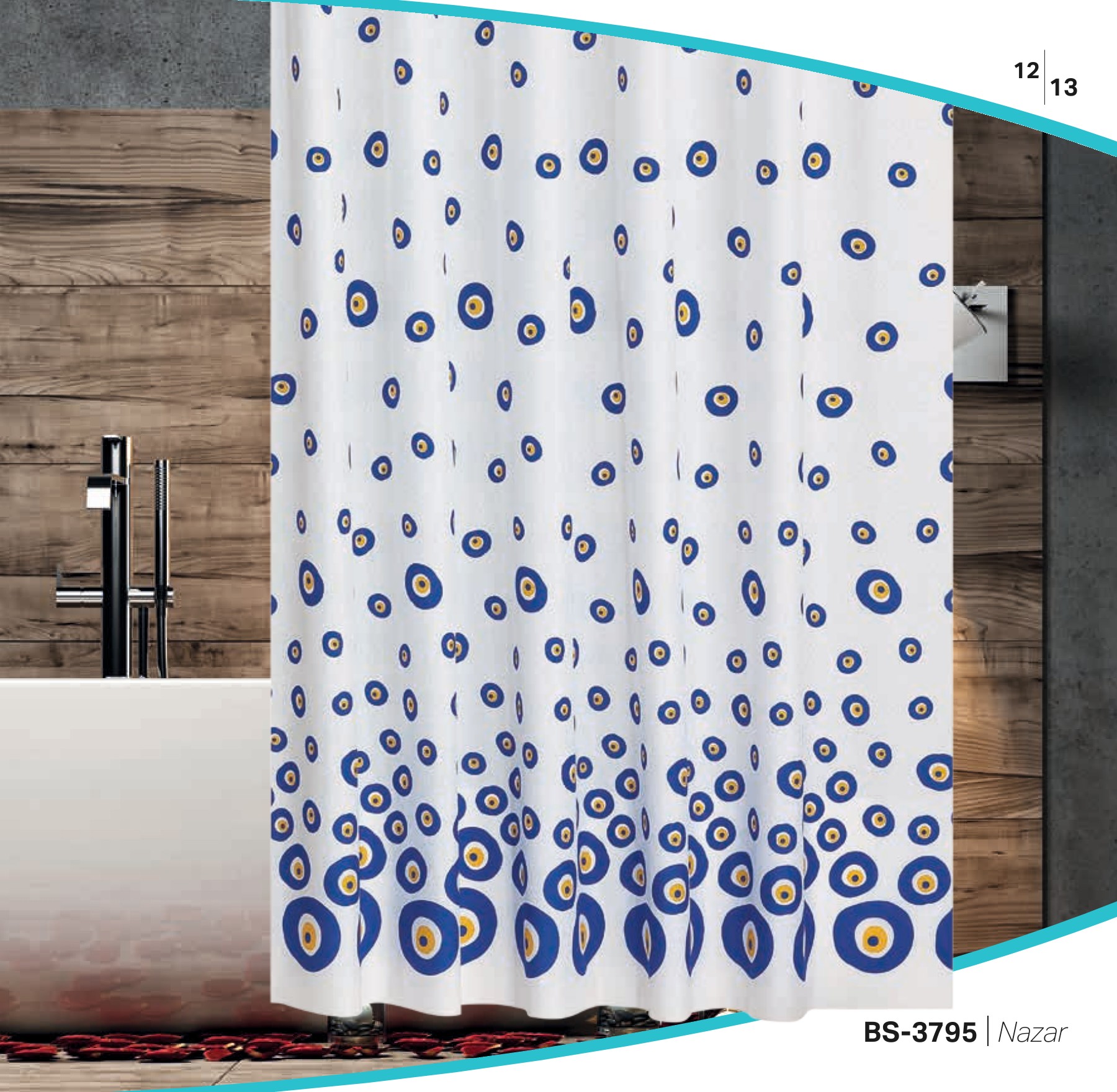 Штора для ванной комнаты TOP STAR 12 колец 282830