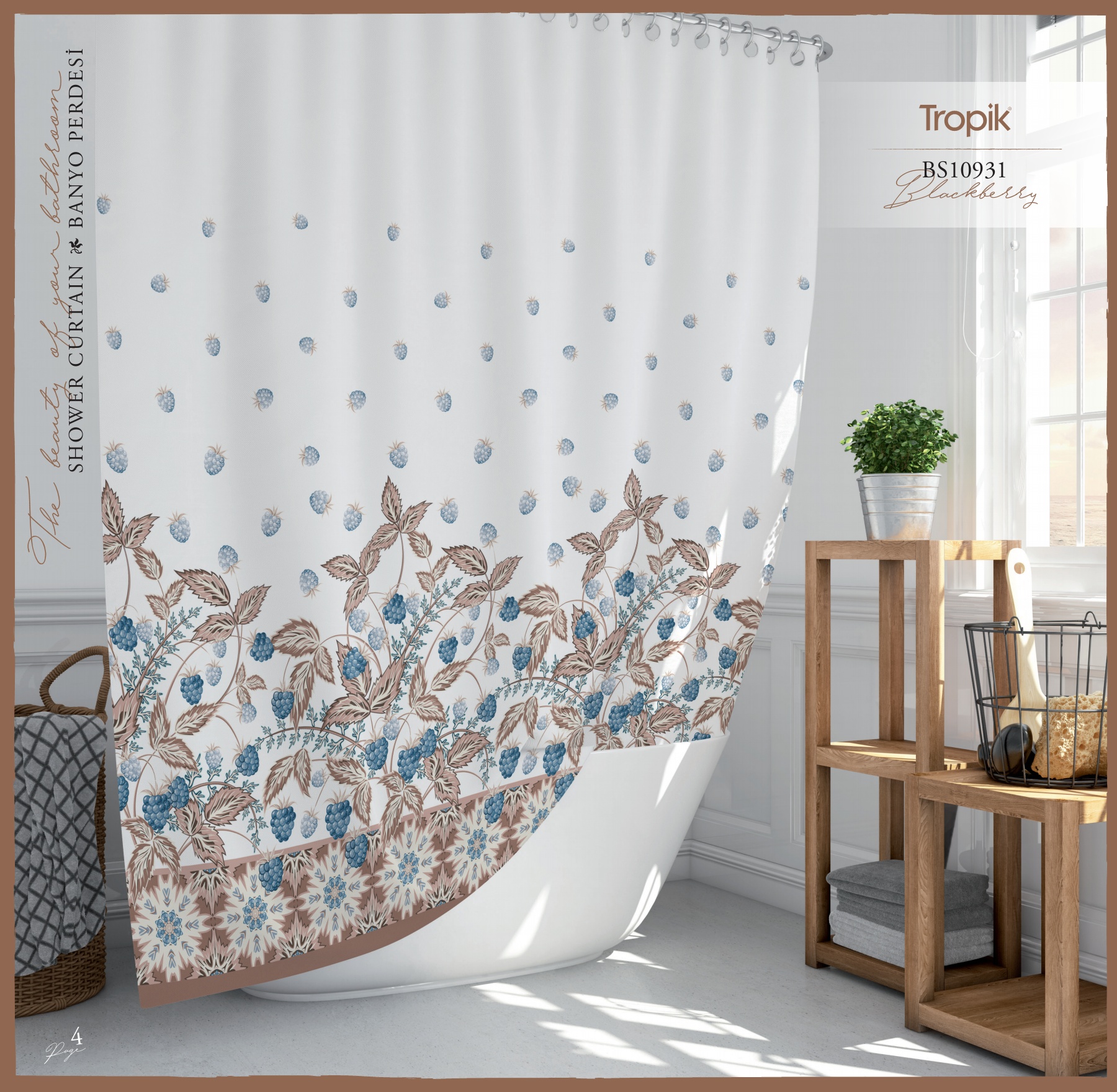 Занавеска для душа 180*200 см Tropik BS5104