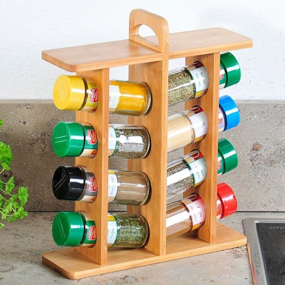 Специи с подставка для специй 8шт.дер/стекло 19098