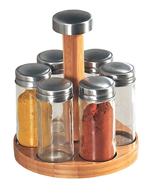 Специи с подставка для специй 6шт.дер/стекло 58096
